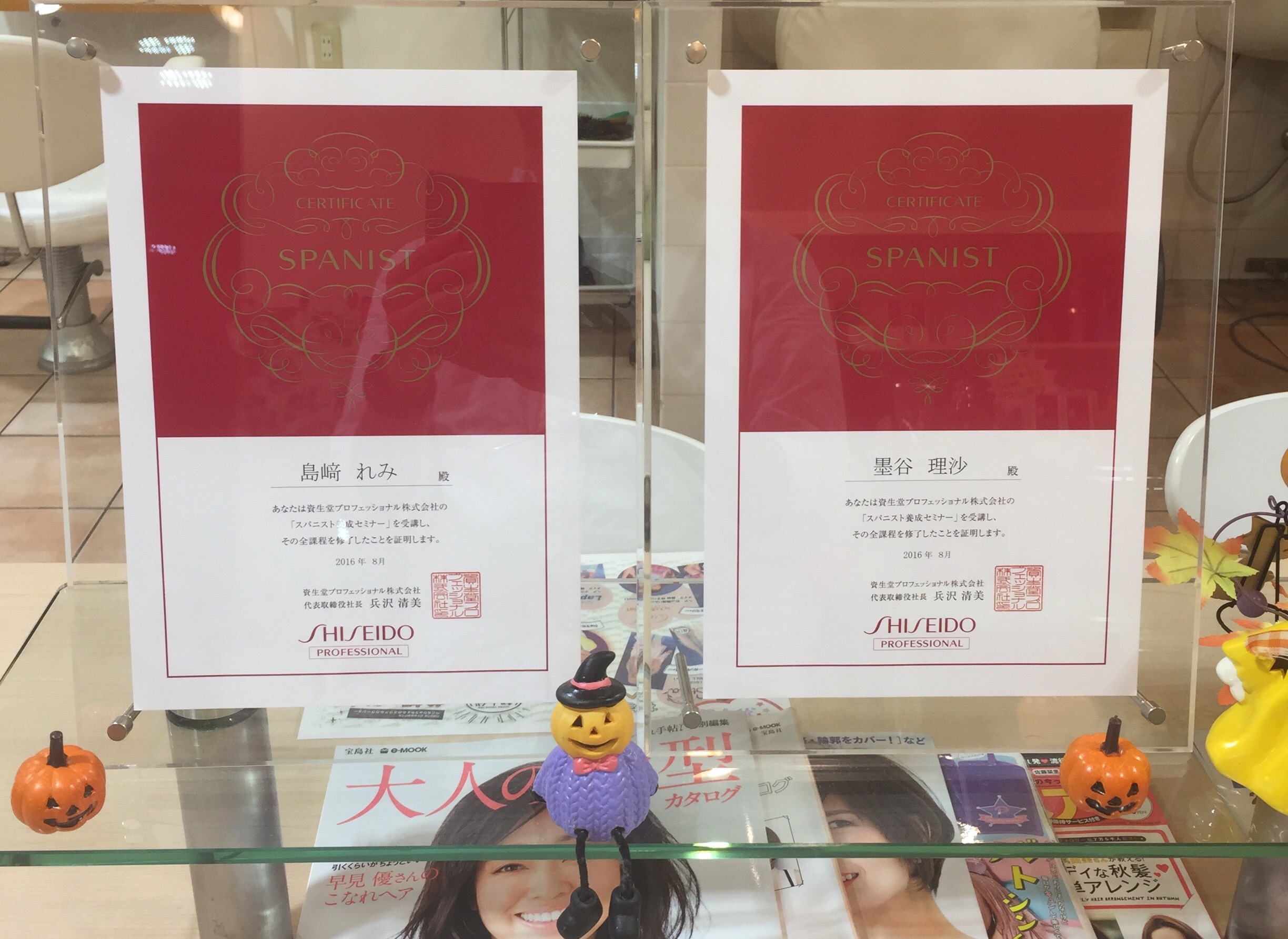 新ヘッドスパ導入にあたって資生堂にディプロマもいただいてます!