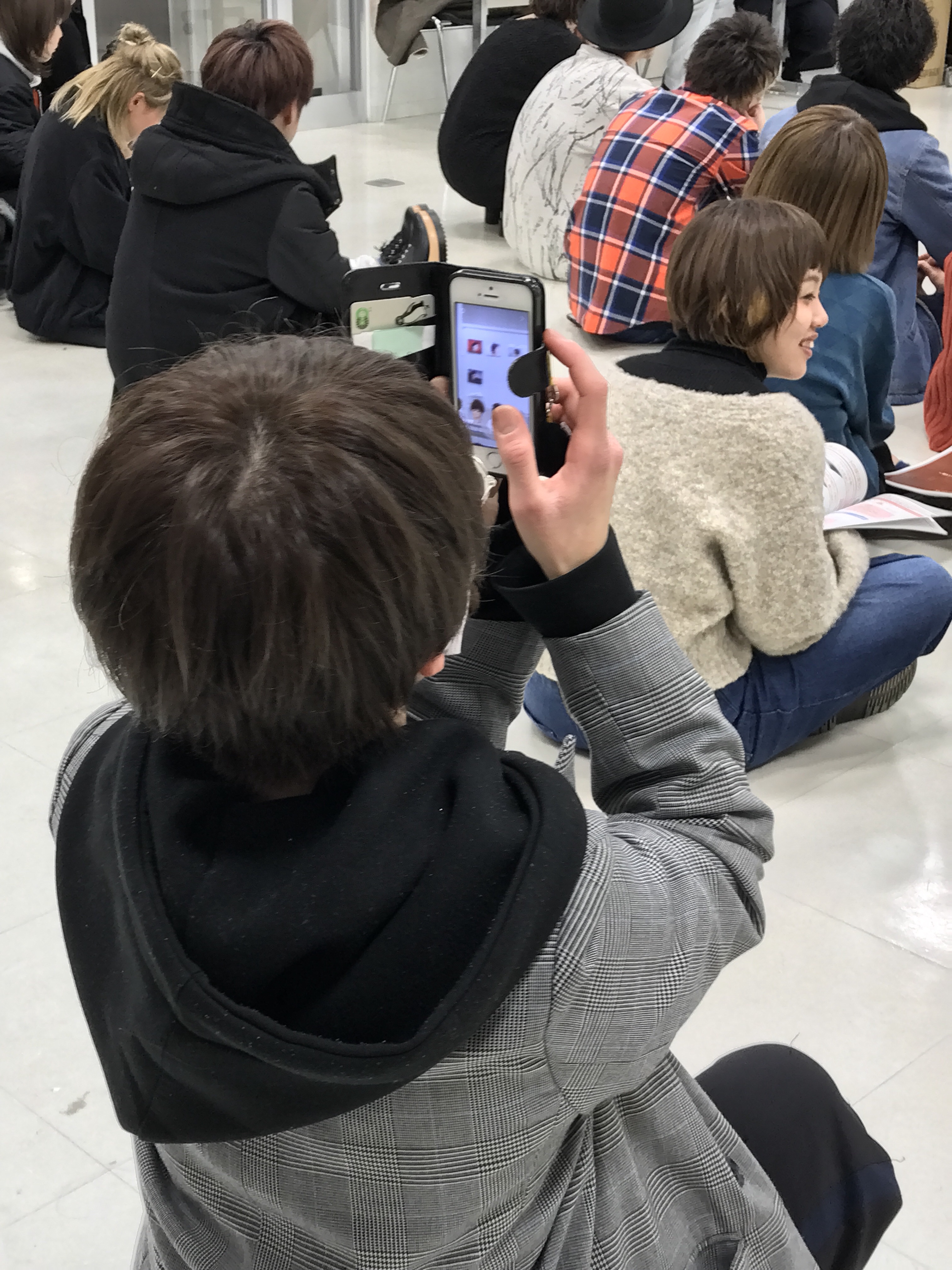 前の人を盗撮しているのです、。。
